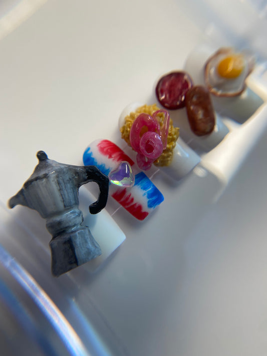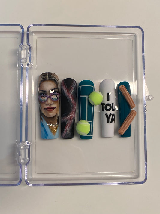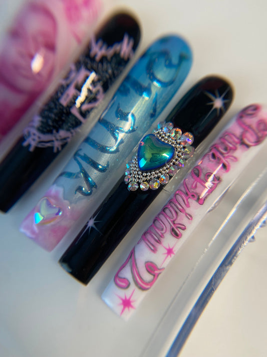 Jenine, also known as J9creatives, has been an artist since she was about 8 years old. She obtained her Bachelor’s in Art, and found a passion for portrait work. She's always loved doing nails and decided to pursue nail art, 4 years ago. Last year she decided to go full-time with her nail career and launched her small business. Since then, she has created many portrait nails, which have been the best sellers in her shop. She loves being creative and thinking outside of the box. She looks forward to working with you on your custom press-on set! 💖